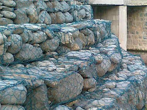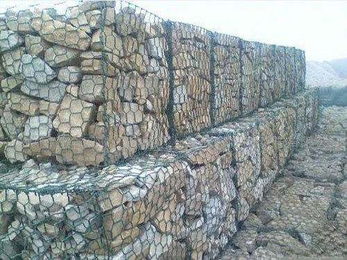 石籠網(wǎng)是金屬線材編織的角形網(wǎng)(六角網(wǎng))制成的網(wǎng)箱,使用的金屬線徑是根據(jù)六角形的大小而不同。如果是金屬鍍層的金屬線六角形,則使用線徑為2.0mm到4.0mm的金屬線,如果是PVC包覆的金屬線編織的六角網(wǎng),則使用外徑為3.0mm到4.0mm的PVC(金屬)線.外框邊緣的線則使用比六角網(wǎng)線粗一號(hào)的線。